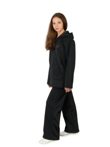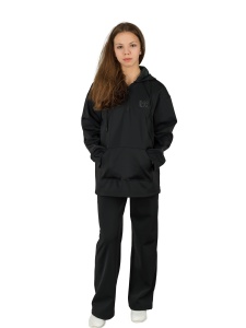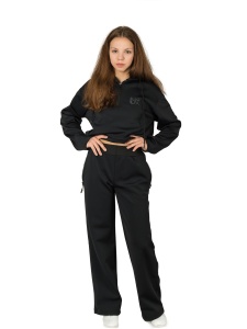 Костюм выполнен из плотного стрейчевого трикотажа без начеса без утеплителя. Костюм женский состоит из толстовки и брюк свободного кроя. Толстовка-анорак с капюшоном регулирующимся шнурком, с карманом кенгуру. Широкие брюки с двумя боковыми карманами на молнии. Костюм женский хороший вариант для повседневной носки , для прогулок. За изделием легко ухаживать. Сезон теплая весна/осень, прохладное лето.